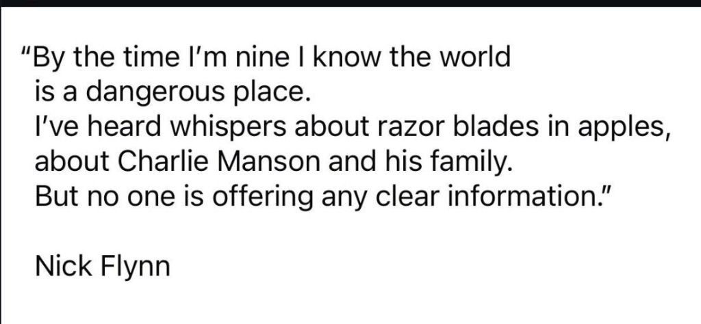 This quote is me, is us, in the middle 1960s, facing the lurking horrors we were schooled to, watching fire fights on the news in black and white while somewhere in the background “Tomorrow Never Knows” played. We were sent forth, armed only with a boy scout knife and a wallet.